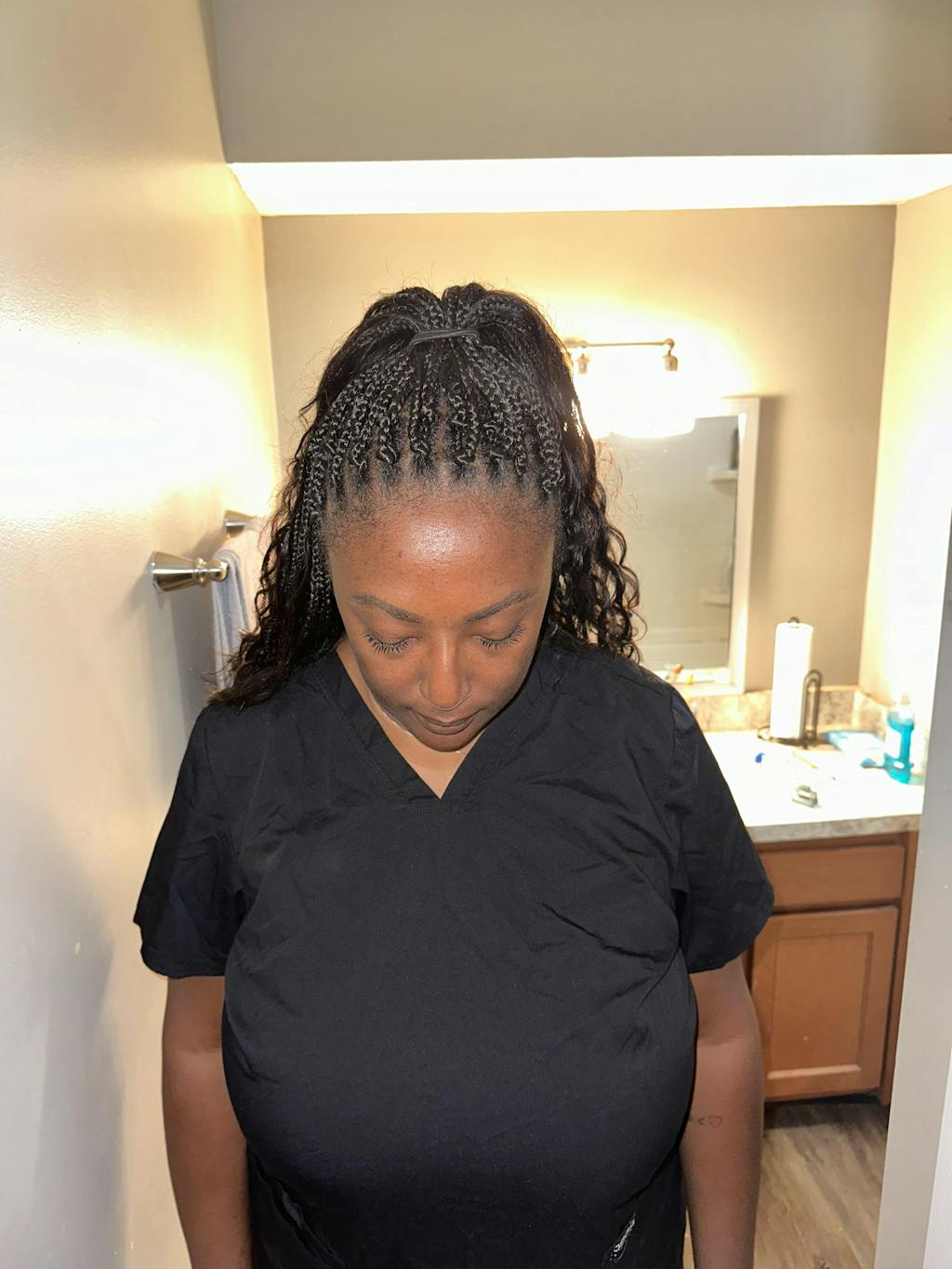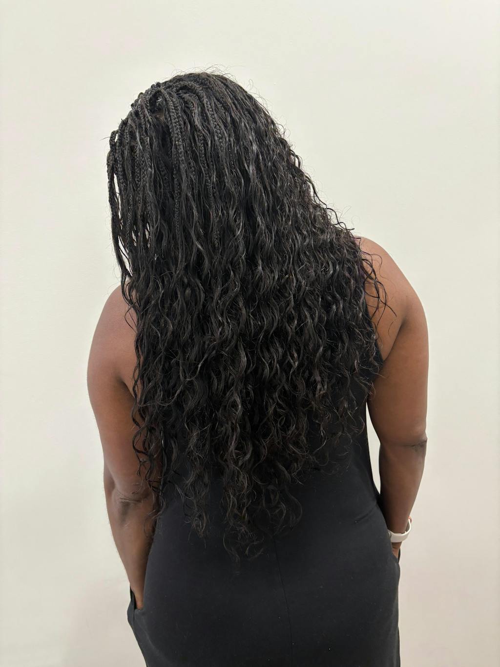Cheveux : tresses Kanekalon + boucles de cheveux humains
