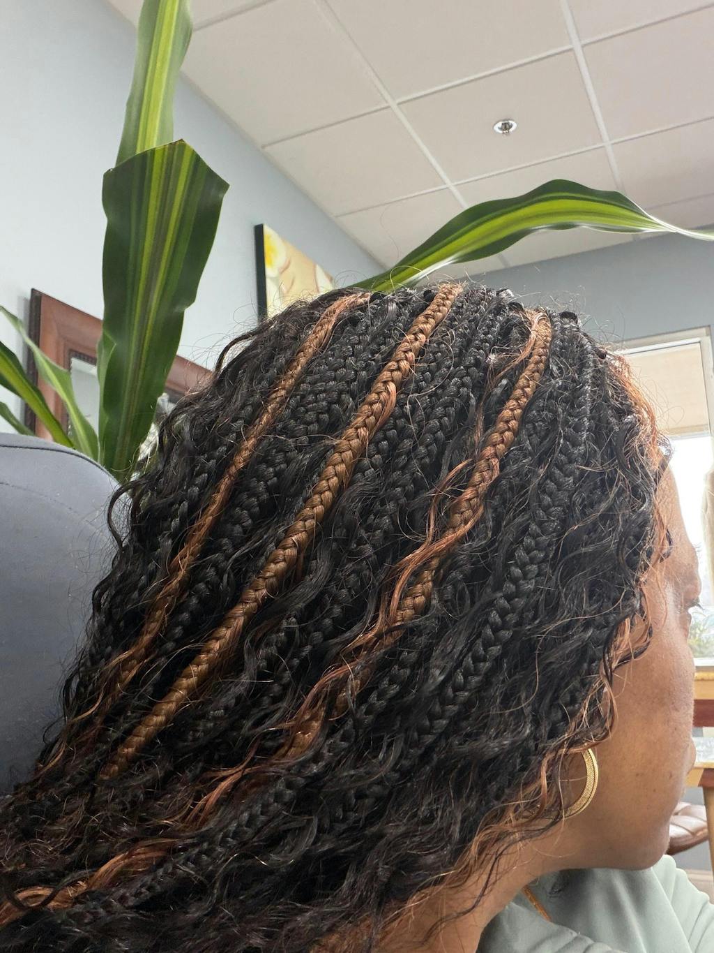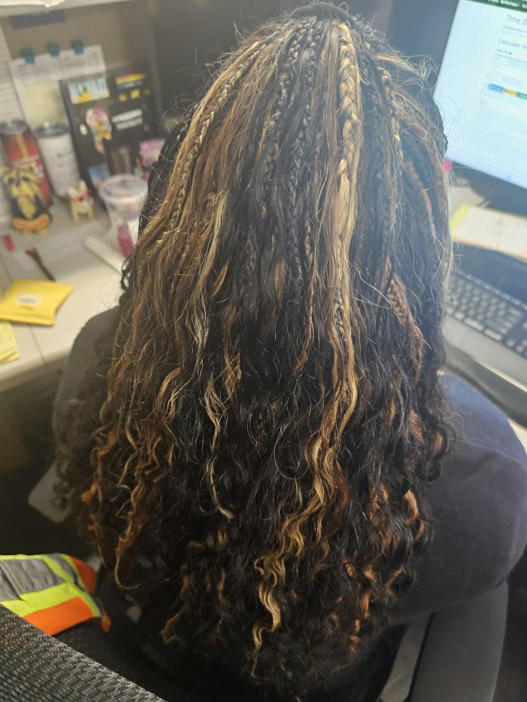 Cheveux : tresses Kanekalon + boucles de cheveux humains